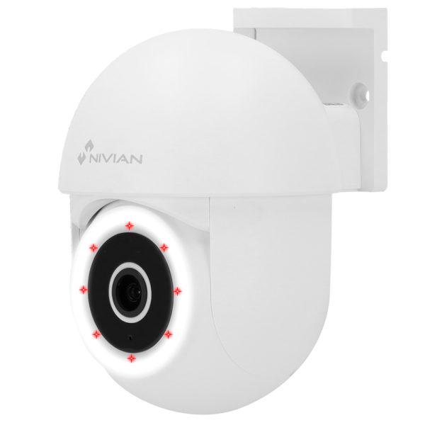 Visão nocturna | Visão nocturna inteligente de acordo com 3 modos: Modo IR: Visão infravermelha com LEDs IR de 10m de alcance – Modo de cor: Visão a cores apoiada por um projetor LED de luz branca – Modo inteligente: Visão por infravermelhos em repouso e ativação do LED branco em caso de deteção / Ativação do LED branco: Manual, programado, por deteção |