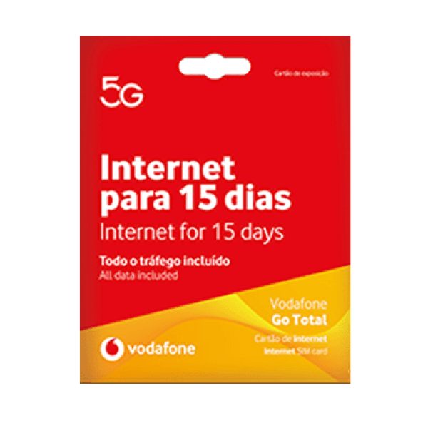 Cartão de internet para hotspot/router, tablet e PC com o tarifário Vodafone Go Total pronto a usar.