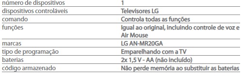 CONTROLE REMOTO IR+BLUETOOTH DE SUBSTITUIÇÃO PARA TV LG